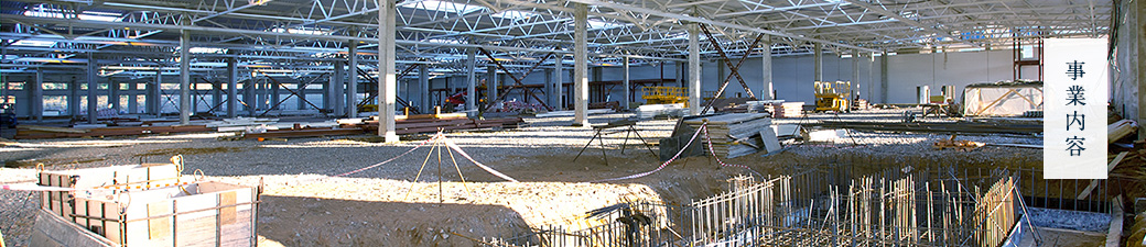 機械基礎や建造物の基礎を行う事業です。数百トン~数千トンにもなる大きな機械を載せる土台(基礎)は地盤沈下・振動・天災等の過酷な環境に耐えながら精度の高い品質を要求されます。この技術力は他の事業の基盤でもあります。